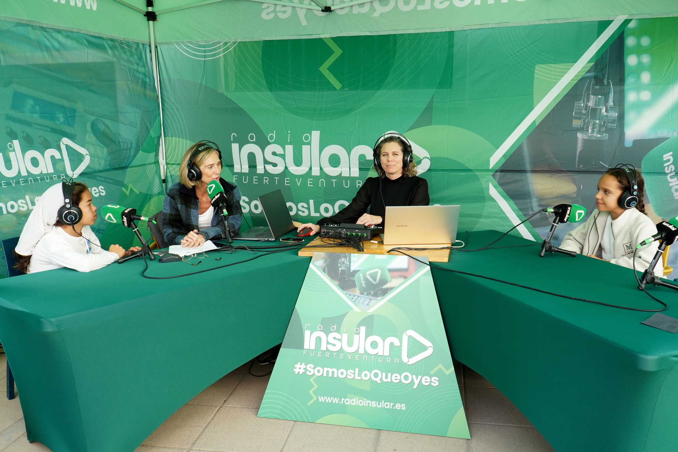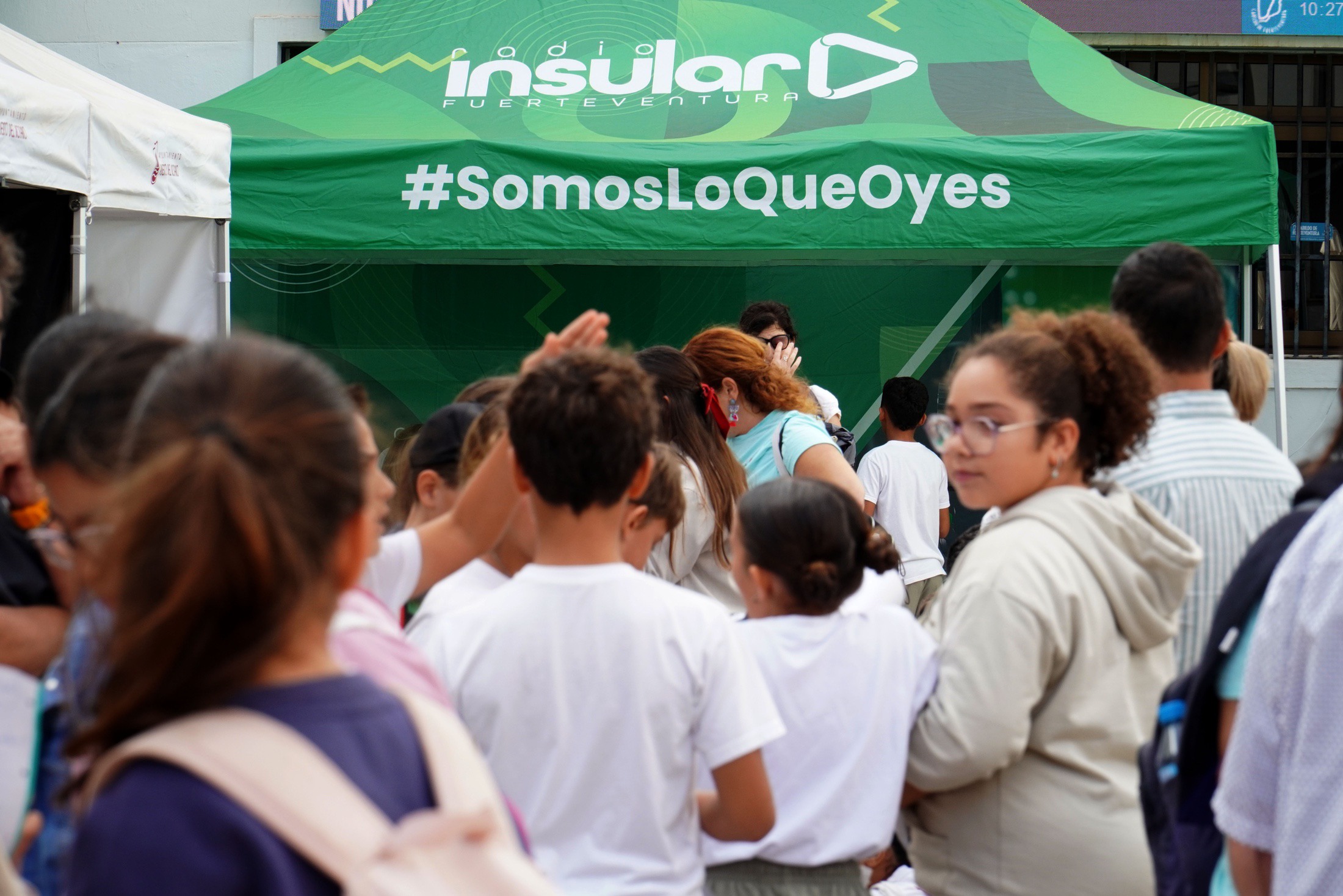 Radio Insular Fuerteventura participó en esta cita con todo su equipo humano y técnico, instalando un set propio para la emisión simultánea en radio y redes sociales. La colaboración se realizó de manera completamente desinteresada, con el objetivo de acompañar, apoyar y amplificar la labor de las radios escolares, reforzando así el compromiso de la emisora con la educación y con los más jóvenes de la Isla.