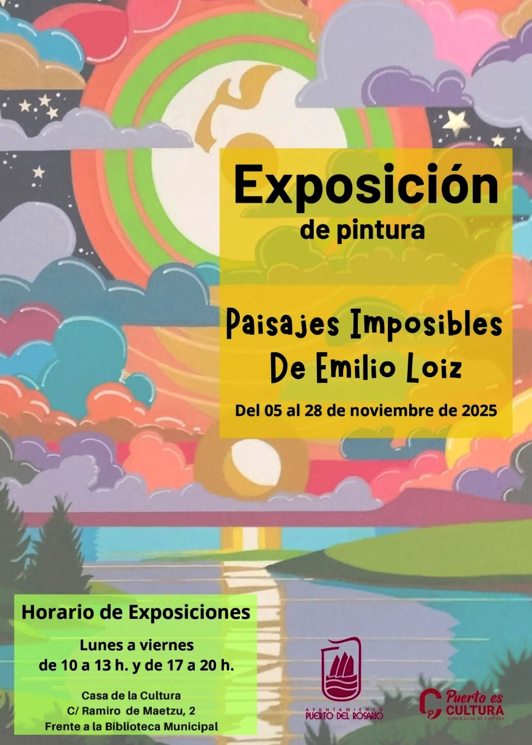 La Casa de la Cultura de Puerto del Rosario en Fuerteventura acoge tres exposiciones de distintos artistas locales durante el mes de noviembre. Las muestras de Emilio Loiz, Antonio Fernández Pérez y Carlos Gutiérrez Palacios reflejan la diversidad artística y se pueden visitar de lunes a viernes en horario de 10:00 a 13:00 y de 17:00 a 20:00. La entrada a las exposiciones es gratuita.