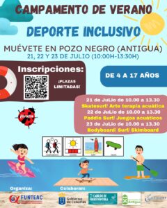 El Ayuntamiento de Antigua colabora con el Campamento Inclusivo de Verano que organiza en Pozo Negro la Fundación Canaria de Apoyo a los Trastornos del Neurodesarrollo, Funteac, del 21 al 23 de julio.