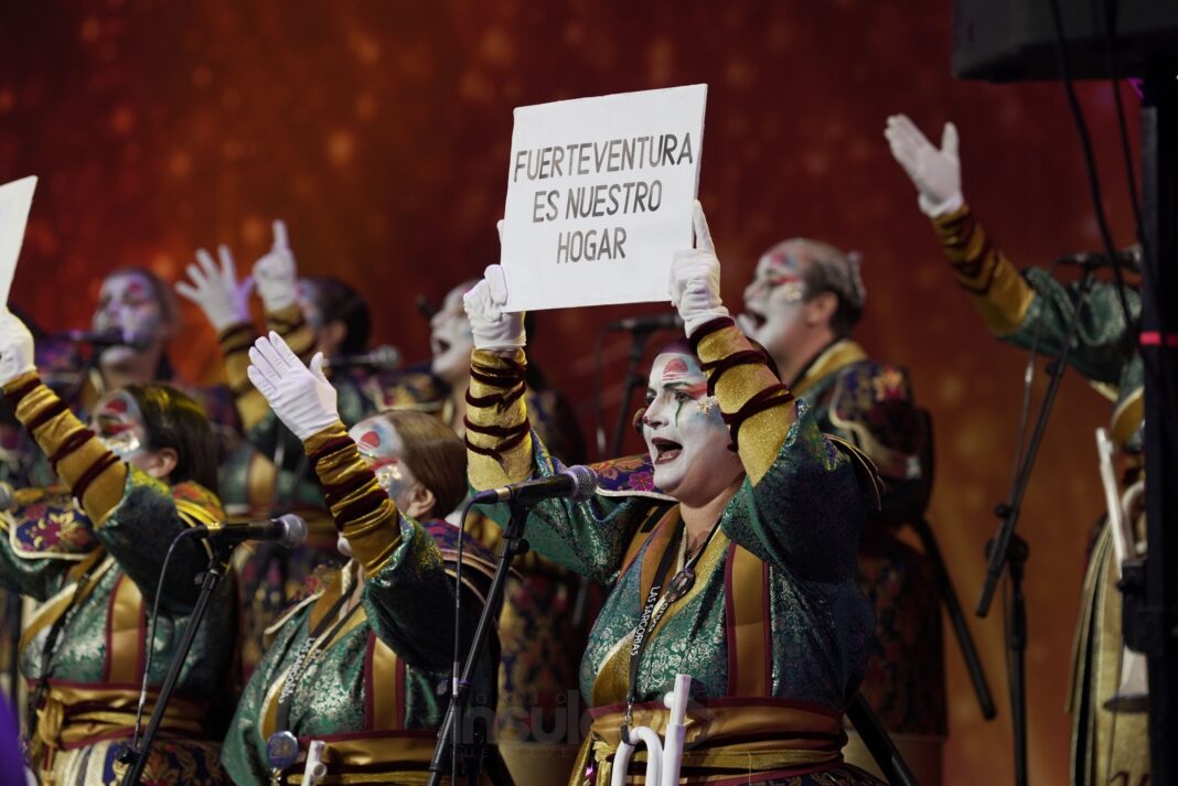 Con un repertorio que mezcló crítica social, humor y emoción, la murga de Corralejo celebró sus 20 años sobre el escenario consolidándose como una de las grandes protagonistas del concurso.