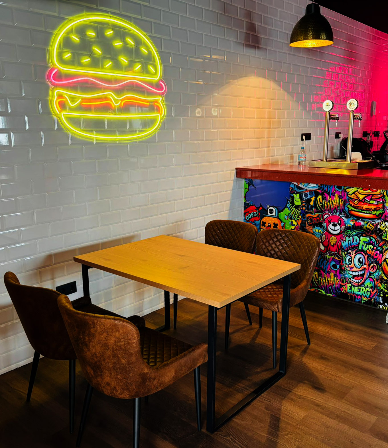 Uno de los elementos más llamativos es el mural principal, obra del artista Pablo Tamayo, que aporta una identidad visual potente al establecimiento. “Le dimos libertad creativa y el resultado es espectacular”, destacó Romero.
